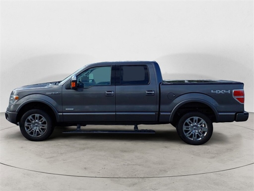 CARFAX One-Owner. Clean CARFAX. Sterling Gray Metallic 2014 Ford F-150 Platinum 4WD 6-Speed Automatic Electronic 3.5L V6 4WD, Equipment Group 700A, Remote keyless entry, 10 Speakers, 20" Polished Aluminum Wheels, 3.55 Axle Ratio, 4-Wheel Disc Brakes, ABS brakes, Adjustable pedals, Air Conditioning, Alloy wheels, AM/FM radio: SiriusXM, Auto tilt-away steering wheel, Auto-dimming door mirrors, Auto-dimming Rear-View mirror, Automatic temperature control, Black Unique Leather Bucket Seats, Bodyside moldings, Bumpers: body-color, CD player, Compass, Delay-off headlights, Driver door bin, Driver vanity mirror, Dual front impact airbags, Dual front side impact airbags, DVD-Audio, Electronic Locking w/3.73 Axle Ratio, Electronic Stability Control, Exterior Parking Camera Rear, Front anti-roll bar, Front Bucket Seats, Front Center Armrest, Front dual zone A/C, Front fog lights, Front License Plate Bracket, Front reading lights, Front wheel independent suspension, Fully automatic headlights, Garage door transmitter, GVWR: 7,350 lbs Payload Package, Heated door mirrors, Heated front seats, Heated rear seats, High-Intensity Discharge Headlights, Illuminated entry, Low tire pressure warning, Max Trailer Tow Pkg - Chrome Mirror, Memory seat, Navigation, Navigation System, Occupant sensing airbag, Outside temperature display, Overhead airbag, Overhead console, Overhead Console w/Single Storage Bin, Panic alarm, Passenger door bin, Passenger vanity mirror, Pedal memory, Power door mirrors, Power driver seat, Power Moonroof, Power passenger seat, Power steering, Power windows, Premium audio system: Sony, Radio data system, Radio: Sony Single-CD w/HD, Rain sensing wipers, Rear Parking Sensors, Rear reading lights, Rear seat center armrest, Rear step bumper, Rear window defroster, Security system, SiriusXM Satellite Radio, Speed control, Speed-sensing steering, Split folding rear seat, Steering wheel memory, Steering wheel mounted audio controls, SYNC Voice Activated Communication & Entertainment, SYNC w/MyFord Touch & SYNC Services, Tachometer, Telescoping steering wheel, Tilt steering wheel, Traction control, Trailer Brake Controller, Trip computer, Turn signal indicator mirrors, Variably intermittent wipers, Ventilated front seats, 4WD, Equipment Group 700A, Remote keyless entry.