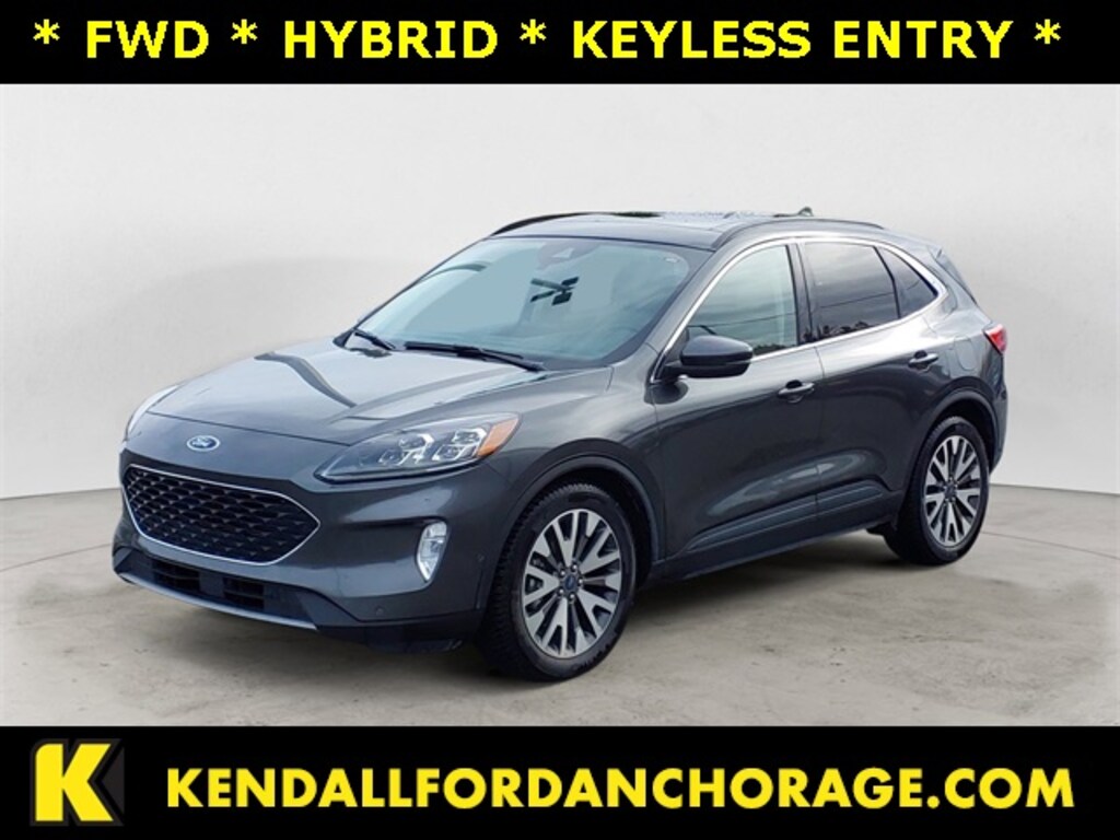 Clean CARFAX. Magnetic 2020 Ford Escape Titanium Hybrid FWD eCVT 2.5L iVCT 2.5L iVCT, eCVT, Delay-off headlights, Equipment Group 400A, Front fog lights, Pedestrian Alert Sounder, Remote keyless entry, Security system, Speed control, Speed-sensing steering, Spoiler, Turn signal indicator mirrors, Wireless Charging Pad, 10 Speakers, 2.91 Axle Ratio, 4-Wheel Disc Brakes, ABS brakes, Air Conditioning, Alloy wheels, AM/FM radio: SiriusXM, Auto High-beam Headlights, Auto-dimming Rear-View mirror, Automatic temperature control, Black Roof-Rack Side Rails, Brake assist, Bumpers: body-color, Compass, Driver door bin, Driver vanity mirror, Dual front impact airbags, Dual front side impact airbags, Electronic Stability Control, Emergency communication system: SYNC 3 911 Assist, Exterior Parking Camera Rear, FordPass Connect, Four wheel independent suspension, Front anti-roll bar, Front Bucket Seats, Front Center Armrest, Front dual zone A/C, Front reading lights, Fully automatic headlights, Garage door transmitter, Head-Up Display, Heated door mirrors, Heated front seats, Heated Leather-Trimmed Front Sport Contour Seats, Heated steering wheel, Illuminated entry, Knee airbag, Leather steering wheel, Low tire pressure warning, Memory seat, Navigation System, Occupant sensing airbag, Outside temperature display, Overhead airbag, Overhead console, Panic alarm, Panoramic Vista Roof, Passenger door bin, Passenger vanity mirror, Power door mirrors, Power driver seat, Power Liftgate, Power passenger seat, Power steering, Power windows, Radio data system, Radio: B&O Sound System by Bang & Olufsen, Rain sensing wipers, Rear anti-roll bar, Rear reading lights, Rear seat center armrest, Rear window defroster, Rear window wiper, Speed-Sensitive Wipers, Split folding rear seat, Steering wheel mounted audio controls, SYNC 3 Communications & Entertainment System, Telescoping steering wheel, Tilt steering wheel, Titanium Premium Package (Discontinued), Traction control, Trip computer, Variably intermittent wipers, Voice-Activated Touchscreen Navigation System, Wheels: 19" Machined-Face Aluminum, 2.5L iVCT, eCVT, Delay-off headlights, Equipment Group 400A, Front fog lights, Pedestrian Alert Sounder, Remote keyless entry, Security system, Speed control, Speed-sensing steering, Spoiler, Turn signal indicator mirrors, Wireless Charging Pad.