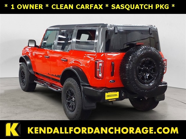 CARFAX One-Owner. Clean CARFAX. Race Red 2023 Ford Bronco Wildtrak 4WD 10-Speed Automatic 2.7L EcoBoost V6 7 Speakers, ABS brakes, Compass, Electronic Stability Control, Equipment Group 352A Mid Package, Front Bucket Seats, Heated door mirrors, Illuminated entry, Low tire pressure warning, Power door mirrors, Remote keyless entry, Traction control, Wildtrak Bodyside Graphic, 4-Wheel Disc Brakes, Air Conditioning, AM/FM radio: SiriusXM with 360L, AM/FM Stereo, Auto High-beam Headlights, Brake assist, Delay-off headlights, Driver door bin, Driver vanity mirror, Dual front impact airbags, Dual front side impact airbags, Emergency communication system: 911 Assist, Exterior Parking Camera Rear, Front anti-roll bar, Front Center Armrest, Front reading lights, Front wheel independent suspension, Fully automatic headlights, Integrated roll-over protection, Occupant sensing airbag, Outside temperature display, Overhead airbag, Overhead console, Panic alarm, Passenger door bin, Passenger vanity mirror, Power steering, Power windows, Radio data system, Security system, SiriusXM Radio w/360L, Speed control, Split folding rear seat, Steering wheel mounted audio controls, SYNC 4, Tachometer, Telescoping steering wheel, Tilt steering wheel, Trip computer, Variably intermittent wipers, 7 Speakers, ABS brakes, Compass, Electronic Stability Control, Equipment Group 352A Mid Package, Front Bucket Seats, Heated door mirrors, Illuminated entry, Low tire pressure warning, Power door mirrors, Remote keyless entry, Traction control, Wildtrak Bodyside Graphic. Priced below KBB Fair Purchase Price!