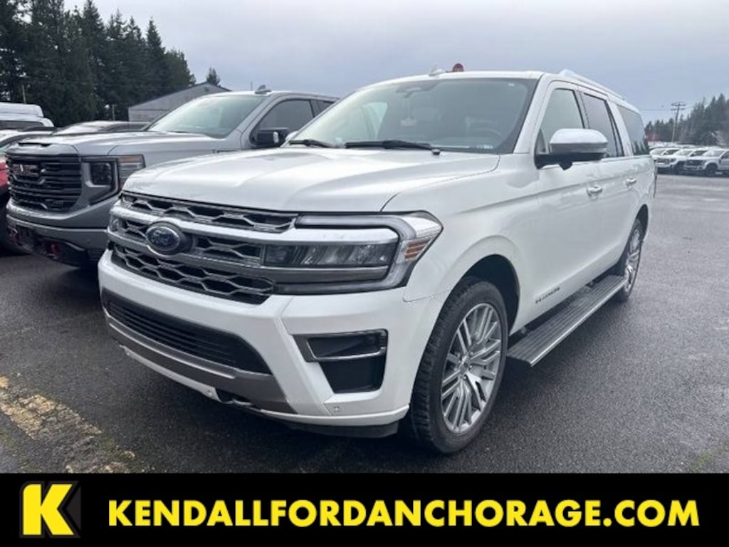 CARFAX One-Owner. Clean CARFAX. White 2023 Ford Expedition Max Platinum 4WD 10-Speed Automatic EcoBoost 3.5L V6 GTDi DOHC 24V Twin Turbocharged 22 Speakers, 3.31 Axle Ratio, 3rd row seats: split-bench, 4-Wheel Disc Brakes, ABS brakes, Adaptive suspension, Adjustable pedals, Air Conditioning, Alloy wheels, AM/FM radio: SiriusXM with 360L, Auto High-beam Headlights, Auto-dimming door mirrors, Auto-dimming Rear-View mirror, Automatic temperature control, Brake assist, Bumpers: body-color, Compass, Delay-off headlights, Driver door bin, Driver vanity mirror, Dual front impact airbags, Dual front side impact airbags, Electronic Stability Control, Emergency communication system: SYNC 4 911 Assist, Equipment Group 600A Standard Package, Exterior Parking Camera Rear, Four wheel independent suspension, Front anti-roll bar, Front Bucket Seats, Front Center Armrest, Front dual zone A/C, Front fog lights, Front reading lights, Fully automatic headlights, Garage door transmitter, Genuine wood console insert, Genuine wood dashboard insert, Genuine wood door panel insert, Heated door mirrors, Heated front seats, Heated rear seats, Heated steering wheel, Htd/Ventilated Prem Lthr Front Captain's Chairs (DISC), Illuminated entry, Leather steering wheel, Low tire pressure warning, Memory seat, Navigation system: Connected Navigation, Occupant sensing airbag, Outside temperature display, Overhead airbag, Overhead console, Panic alarm, Passenger door bin, Passenger vanity mirror, Pedal memory, Power door mirrors, Power driver seat, Power Liftgate, Power moonroof, Power passenger seat, Power steering, Power windows, Radio data system, Radio: B&O Unleashed Sound System by Bang & Olufsen, Rain sensing wipers, Rear air conditioning, Rear anti-roll bar, Rear audio controls, Rear reading lights, Rear window defroster, Rear window wiper, Reclining 3rd row seat, Remote keyless entry, Security system, SiriusXM w/360L, Speed control, Speed-sensing steering, Speed-Sensitive Wipers, Split folding rear seat, Spoiler, Steering wheel memory, Steering wheel mounted audio controls, SYNC 4 w/Enhanced Voice Recognition, Tachometer, Telescoping steering wheel, Tilt steering wheel, Traction control, Trip computer, Turn signal indicator mirrors, Variably intermittent wipers, Ventilated front seats, Voltmeter, Wheels: 22" 12-Spoke Polished Aluminum.