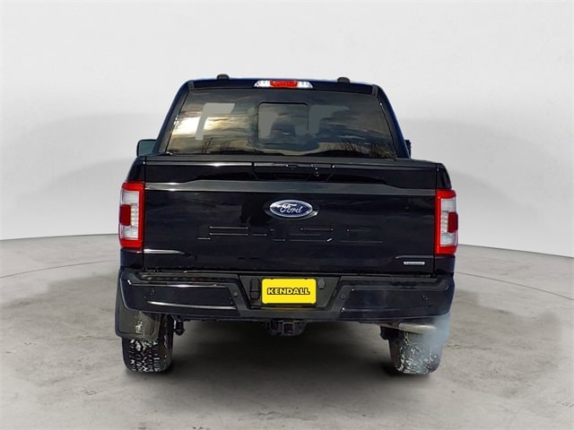Clean CARFAX. Black 2023 Ford F-150 Lariat 4WD 10-Speed Automatic 3.5L V6 EcoBoost 4WD, 3.31 Axle Ratio, 4-Wheel Disc Brakes, 8 Speakers, ABS brakes, Accent-Color Angular Step Bars, Adjustable pedals, Air Conditioning, Alloy wheels, AM/FM radio: SiriusXM with 360L, Auto High-beam Headlights, Auto-dimming door mirrors, Auto-dimming Rear-View mirror, Automatic temperature control, Body-Color Front & Rear Bumpers, Box Side Decals, Brake assist, Bumpers: chrome, Chrome Single-Tip Exhaust, Chrome wheels, Class IV Trailer Hitch Receiver, Compass, Dark 2-Bar & 1 Minor Bar Style Grille, Delay-off headlights, Driver door bin, Driver vanity mirror, Dual front impact airbags, Dual front side impact airbags, Electronic Stability Control, Emergency communication system: SYNC 4 911 Assist, Equipment Group 501A Standard, Exterior Parking Camera Rear, Front anti-roll bar, Front Bucket Seats, Front Center Armrest, Front dual zone A/C, Front fog lights, Front reading lights, Front wheel independent suspension, Fully automatic headlights, Garage door transmitter, Heated door mirrors, Heated front seats, Heated steering wheel, Illuminated entry, Lariat Sport Appearance Package, Leather-Trimmed Bucket Seats, Low tire pressure warning, Memory seat, Occupant sensing airbag, Outside temperature display, Overhead airbag, Overhead console, Panic alarm, Passenger door bin, Passenger vanity mirror, Pedal memory, Power door mirrors, Power driver seat, Power passenger seat, Power steering, Power windows, Radio data system, Radio: B&O Sound System by Bang & Olufsen, Rear reading lights, Rear seat center armrest, Rear step bumper, Rear window defroster, Remote keyless entry, Security system, Speed control, Speed-sensing steering, Split folding rear seat, Steering wheel mounted audio controls, SYNC 4 w/Enhanced Voice Recognition, Tachometer, Telescoping steering wheel, Tilt steering wheel, Traction control, Trip computer, Turn signal indicator mirrors, Variably intermittent wipers, Ventilated front seats, Voltmeter, Wheels: 18" Chrome-Like PVD, 4WD.