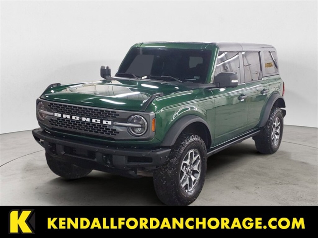CARFAX One-Owner. Eruption Green Metallic 2024 Ford Bronco Badlands 4WD 10-Speed Automatic 2.7L EcoBoost V6 10 Speakers w/Subwoofer, 2-Door Intelligent Access w/Lock/Unlock, 360-Degree Camera, Adaptive Cruise Control, Additional Sound Deadening, Ambient Footwell Lighting, Auto-Dimming Interior Rear-View Mirror, Dr & Pass Illuminated Sliding Visor Vanity Mirrors, Dual Smart Charging USB Ports, Dual-Zone Electronic Automatic Temperature Control, Equipment Group 334A High/Lux Package, Evasive Steering Assist, Front Parking Sensors, Front Row Heated Seats, Heated Steering Wheel, Information on Demand Panel, Power Outlet - Back Side of Center Floor Console, Radio: B&O Sound System by Bang & Olufsen, Rear Parking Sensors, Sideview Mirrors, Universal Garage Door Opener, Wireless Charging Pad, 4-Wheel Disc Brakes, 4.7 Axle Ratio, 7 Speakers, ABS brakes, Air Conditioning, Alloy wheels, AM/FM radio: SiriusXM with 360L, AM/FM Stereo, Auto High-Beam Headlamps, Auto High-beam Headlights, BLIS Blind Spot Information System, Brake assist, Carbonized Gray Molded-In-Color Hard Top, Compass, Delay-off headlights, Driver door bin, Driver vanity mirror, Dual front impact airbags, Dual front side impact airbags, Electronic Stability Control, Emergency communication system: 911 Assist, Engine Block Heater, Exterior Parking Camera Rear, Front & Rear Floor Liners w/o Carpet Floor Mats, Front anti-roll bar, Front Bucket Seats, Front Center Armrest, Front License Plate Bracket, Front reading lights, Front Row Top Panels Storage Bag, Front wheel independent suspension, Fully automatic headlights, Hard Top Sound Deadening Headliner, Heated door mirrors, Illuminated entry, Integrated roll-over protection, Lane-Keeping System, Leather Shift Knob, Low tire pressure warning, Marine Grade Vinyl Bucket Seats, Occupant sensing airbag, Outside temperature display, Overhead airbag, Overhead console, Panic alarm, Passenger door bin, Passenger vanity mirror, Power door mirrors, Power steering, Power windows, Pre-Collision Assist w/Automatic Emergency Braking, Radio data system, Rear-View Camera, Rear-Window Defroster & Washer, Remote keyless entry, Security system, SiriusXM Radio w/360L, Speed control, Split folding rear seat, Steering wheel mounted audio controls, SYNC 4, Tachometer, Telescoping steering wheel, Tilt steering wheel, Traction control, Trailer Tow Package (DIO), Trip computer, Variably intermittent wipers, Voltmeter, Wheels: 17" Machined Carbonized Aluminum, 10 Speakers w/Subwoofer, 2-Door Intelligent Access w/Lock/Unlock, 360-Degree Camera, Adaptive Cruise Control, Additional Sound Deadening, Ambient Footwell Lighting, Auto-Dimming Interior Rear-View Mirror, Dr & Pass Illuminated Sliding Visor Vanity Mirrors, Dual Smart Charging USB Ports, Dual-Zone Electronic Automatic Temperature Control, Equipment Group 334A High/Lux Package, Evasive Steering Assist, Front Parking Sensors, Front Row Heated Seats, Heated Steering Wheel, Information on Demand Panel, Power Outlet - Back Side of Center Floor Console, Radio: B&O Sound System by Bang & Olufsen, Rear Parking Sensors, Sideview Mirrors, Universal Garage Door Opener, Wireless Charging Pad.