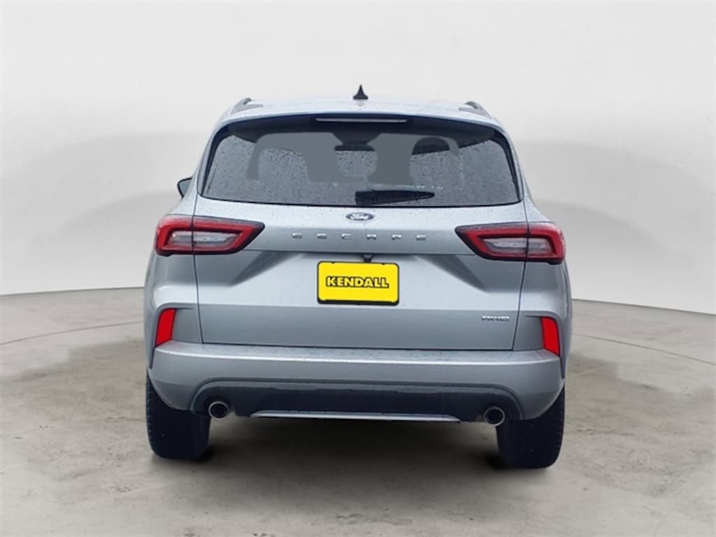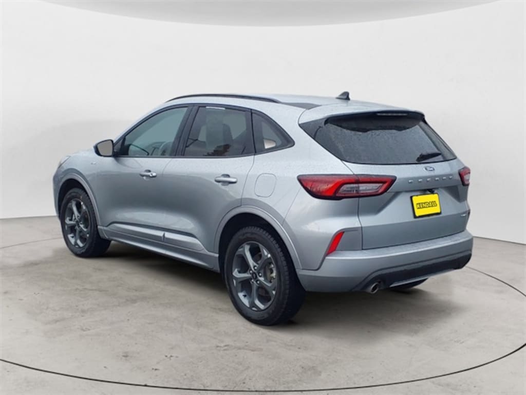 CARFAX One-Owner. Clean CARFAX. Silver Metallic 2024 Ford Escape ST-Line Select AWD 8-Speed Automatic EcoBoost 2.0L I4 GTDi DOHC Turbocharged VCT AWD, Electronic Fuel Door Release, Equipment Group 401A, Panic alarm, Pedestrian Alert Sounder, Remote keyless entry, Roof rack: rails only, 2.91 Axle Ratio, 4-Wheel Disc Brakes, 6 Speakers, ABS brakes, Air Conditioning, Alloy wheels, AM/FM radio: SiriusXM, AM/FM Stereo, Auto High-beam Headlights, Automatic temperature control, Brake assist, Bumpers: body-color, Compass, Delay-off headlights, Driver door bin, Driver vanity mirror, Dual front impact airbags, Dual front side impact airbags, Electronic Stability Control, Emergency communication system: SYNC 4 911 Assist, Engine Block Heater, Exterior Parking Camera Rear, FordPass Connect, Four wheel independent suspension, Front & Rear Floor Liners w/Carpet Mats, Front anti-roll bar, Front Bucket Seats, Front Center Armrest, Front dual zone A/C, Front fog lights, Front License Plate Bracket, Front reading lights, Fully automatic headlights, Heated door mirrors, Heated front seats, Heated steering wheel, Heated Vinyl/Cloth Front Sport Contour Bucket Seats, Illuminated entry, Knee airbag, Low tire pressure warning, Neutral Towing Capability, Occupant sensing airbag, Outside temperature display, Overhead airbag, Overhead console, Passenger door bin, Passenger vanity mirror, Power door mirrors, Power driver seat, Power Liftgate, Power steering, Power windows, Radio data system, Rear anti-roll bar, Rear reading lights, Rear seat center armrest, Rear window defroster, Rear window wiper, Speed control, Speed-sensing steering, Speed-Sensitive Wipers, Split folding rear seat, Spoiler, Sport steering wheel, Steering wheel mounted audio controls, SYNC 4, Tachometer, Telescoping steering wheel, Tilt steering wheel, Traction control, Trip computer, Variably intermittent wipers, Wheels: 18" Rock Metallic Painted Aluminum, AWD, Electronic Fuel Door Release, Equipment Group 401A, Panic alarm, Pedestrian Alert Sounder, Remote keyless entry, Roof rack: rails only.