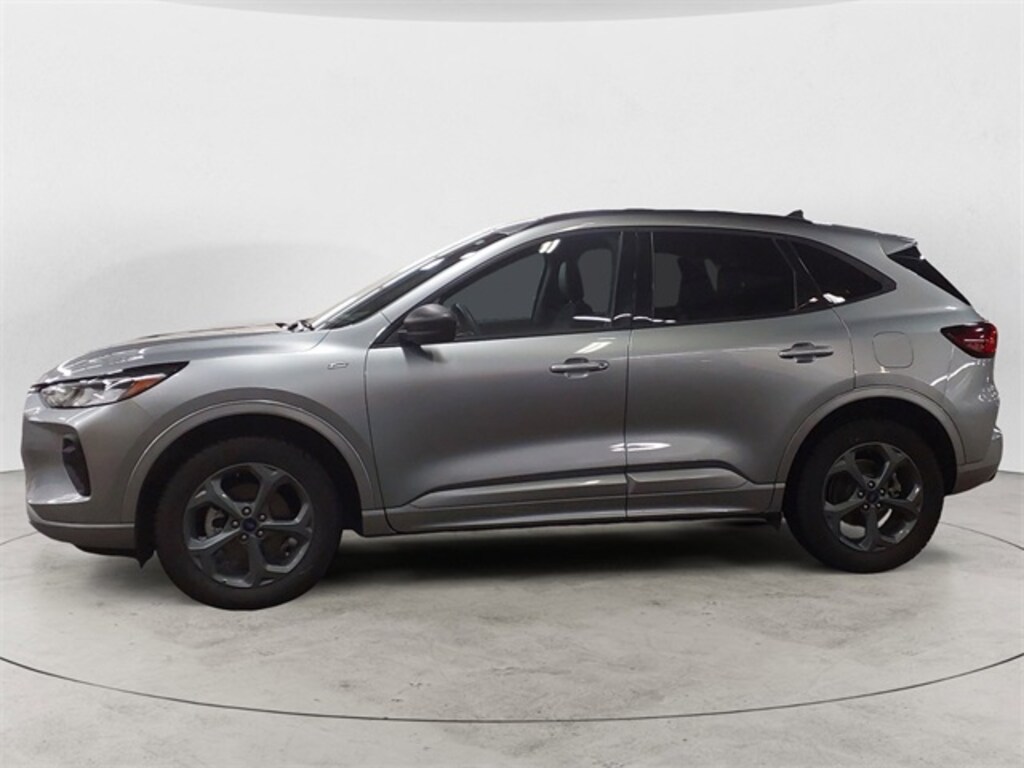 Clean CARFAX. Iconic Silver Metallic 2024 Ford Escape ST-Line AWD 8-Speed Automatic 1.5L EcoBoost AWD, 3.81 Axle Ratio, 4-Wheel Disc Brakes, 6 Speakers, ABS brakes, Adaptive Cruise Control w/Stop-and-Go, Air Conditioning, Alloy wheels, AM/FM radio: SiriusXM, AM/FM Stereo, Auto High-beam Headlights, Automatic temperature control, Brake assist, Bumpers: body-color, Cold Weather Package, Compass, Connected Navigation, Delay-off headlights, Driver door bin, Driver vanity mirror, Dual front impact airbags, Dual front side impact airbags, Electronic Stability Control, Emergency communication system: SYNC 4 911 Assist, Engine Block Heater, Equipment Group 300A, Exterior Parking Camera Rear, Ford Co-Pilot360 Assist+, FordPass Connect, Four wheel independent suspension, Front anti-roll bar, Front Bucket Seats, Front Center Armrest, Front dual zone A/C, Front License Plate Bracket, Front reading lights, Fully automatic headlights, Heated Front Row Seats, Heated Sideview Mirrors, Heated Steering Wheel, Illuminated entry, Knee airbag, Low tire pressure warning, Occupant sensing airbag, Outside temperature display, Overhead airbag, Overhead console, Panic alarm, Passenger door bin, Passenger vanity mirror, Power door mirrors, Power driver seat, Power Liftgate, Power steering, Power windows, Radio data system, Rear anti-roll bar, Rear Parking Sensor, Rear reading lights, Rear seat center armrest, Rear window defroster, Rear window wiper, Rear-View Camera, Remote keyless entry, Remote Starter System, Roof rack: rails only, Speed control, Speed Sign Recognition, Speed-sensing steering, Speed-Sensitive Wipers, Split folding rear seat, Spoiler, Sport steering wheel, Steering wheel mounted audio controls, SYNC 4, SYNC 4 w/Enhanced Voice Recognition, Tachometer, Tech Pack #1, Telescoping steering wheel, Tilt steering wheel, Traction control, Trip computer, Variably intermittent wipers, Vinyl/Cloth Front Sport Contour Bucket Seats, Wheels: 18" Rock Metallic Painted Aluminum, AWD.