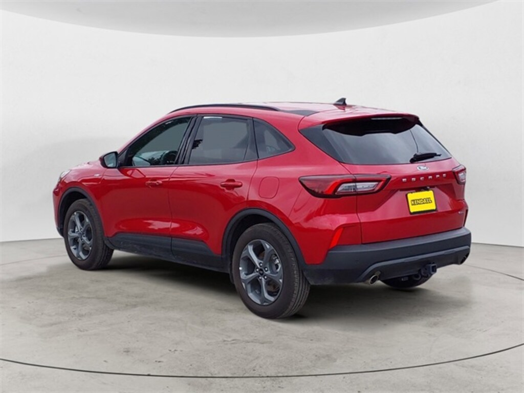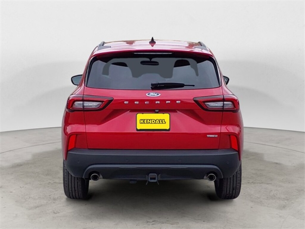 Clean CARFAX. Red Metallic 2025 Ford Escape Hybrid ST-Line Select AWD eCVT 2.5L iVCT 2.5L iVCT, Adaptive Cruise Control w/Stop-and-Go, Connected Navigation, Driver door bin, Driver vanity mirror, Electronic Fuel Door Release, Equipment Group 400A, Ford Co-Pilot360 Assist+, Intersection Assist, Neutral Towing Capability, Pedestrian Alert Sounder, Predictive Speed Assist, Rear Parking Sensor, Rear-View Camera, SYNC 4 w/Enhanced Voice Recognition, Tech Pack #1, 2.91 Axle Ratio, 4-Wheel Disc Brakes, 6 Speakers, ABS brakes, Air Conditioning, Alloy wheels, AM/FM radio: SiriusXM, AM/FM Stereo, Auto High-beam Headlights, Automatic temperature control, Brake assist, Bumpers: body-color, Class II Trailer Tow Package, Compass, Delay-off headlights, Dual front impact airbags, Dual front side impact airbags, Electronic Stability Control, Emergency communication system: SYNC 4 911 Assist, Engine Block Heater, FordPass Connect, Four wheel independent suspension, Front anti-roll bar, Front Bucket Seats, Front Center Armrest, Front dual zone A/C, Front fog lights, Front reading lights, Fully automatic headlights, Heated door mirrors, Heated front seats, Heated steering wheel, Heated Vinyl/Cloth Front Sport Contour Bucket Seats, Illuminated entry, Knee airbag, Low tire pressure warning, Occupant sensing airbag, Outside temperature display, Overhead airbag, Overhead console, Panic alarm, Passenger door bin, Passenger vanity mirror, Power door mirrors, Power driver seat, Power Liftgate, Power steering, Power windows, Radio data system, Rear anti-roll bar, Rear reading lights, Rear seat center armrest, Rear window defroster, Rear window wiper, Remote keyless entry, Speed control, Speed-sensing steering, Speed-Sensitive Wipers, Split folding rear seat, Spoiler, Sport steering wheel, Steering wheel mounted audio controls, SYNC 4, Tachometer, Telescoping steering wheel, Tilt steering wheel, Traction control, Trip computer, Variably intermittent wipers, Wheels: 18" Rock Metallic Painted Aluminum, 2.5L iVCT, Adaptive Cruise Control w/Stop-and-Go, Connected Navigation, Driver door bin, Driver vanity mirror, Electronic Fuel Door Release, Equipment Group 400A, Ford Co-Pilot360 Assist+, Intersection Assist, Neutral Towing Capability, Pedestrian Alert Sounder, Predictive Speed Assist, Rear Parking Sensor, Rear-View Camera, SYNC 4 w/Enhanced Voice Recognition, Tech Pack #1.