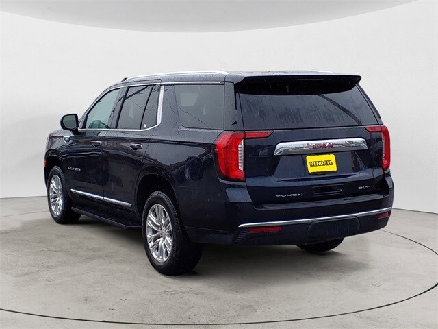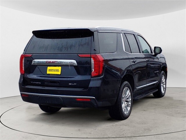 CARFAX One-Owner. Clean CARFAX. Midnight Blue Metallic 2024 GMC Yukon SLT 4WD 10-Speed Automatic with Overdrive EcoTec3 5.3L V8 4WD, 12-Way Power Seat Adjusters, 2 Presets For Power Driver Seat, 9 Speakers, Air Conditioning, AM/FM radio: SiriusXM with 360L, AM/FM Stereo, Automatic temperature control, Bose 9-Speaker Stereo Audio System Feature, Bright Chrome Bodyside Moldings, Bright Front & Rear Door Sill Plates, Chrome Door Handles w/Body-Color Strip, Four wheel independent suspension, Front dual zone A/C, Hands-Free Power Programmable Rear Liftgate, Heated Driver & Front Passenger Seats, Inside Rear-View Auto-Dimming Mirror, Navigation System, Perforated Heated & Ventilated Dr & Frt Pass Seats, Power driver seat, Power steering, Power windows, Preferred Equipment Group 4SA, Rear window defroster, Safety Alert Seat, SiriusXM w/360L, Universal Home Remote, Wireless Charging, 3.23 Rear Axle Ratio, 3rd row seats: split-bench, 4-Wheel Disc Brakes, ABS brakes, Alloy wheels, Apple CarPlay/Android Auto, Auto High-beam Headlights, Auto-dimming Rear-View mirror, Automatic Emergency Braking, Bodyside moldings, Brake assist, Bumpers: body-color, Compass, Delay-off headlights, Driver door bin, Driver vanity mirror, Dual front impact airbags, Dual front side impact airbags, Electronic Stability Control, Emergency communication system: OnStar and GMC connected services capable, Engine Block Heater, Following Distance Indicator, Forward Collision Alert, Front & Rear Park Assist, Front anti-roll bar, Front Bucket Seats, Front Center Armrest, Front fog lights, Front Pedestrian Braking, Front reading lights, Fully automatic headlights, Garage door transmitter, Heated door mirrors, Heated front seats, Illuminated entry, IntelliBeam Automatic High Beam On/Off, Lane Change Alert w/Side Blind Zone Alert, Lane Keep Assist w/Lane Departure Warning, Low tire pressure warning, Memory seat, Occupant sensing airbag, Outside temperature display, Overhead airbag, Overhead console, Panic alarm, Passenger door bin, Passenger vanity mirror, Perforated Leather-Appointed Seating, Power door mirrors, Power Liftgate, Power passenger seat, Premium Smooth Ride Suspension, Rain sensing wipers, Rear air conditioning, Rear anti-roll bar, Rear Cross Traffic Alert, Rear reading lights, Rear seat center armrest, Rear window wiper, Remote keyless entry, Roof rack: rails only, Security system, Speed control, Speed-sensing steering, Split folding rear seat, Spoiler, Steering wheel mounted audio controls, Tachometer, Telescoping steering wheel, Tilt steering wheel, Traction control, Trip computer, Variably intermittent wipers, Ventilated front seats, Voltmeter, Wheels: 20" x 9" 6-Spoke Polished Aluminum, 4WD, 12-Way Power Seat Adjusters, 2 Presets For Power Driver Seat, 9 Speakers, Air Conditioning, AM/FM radio: SiriusXM with 360L, AM/FM Stereo, Automatic temperature control, Bose 9-Speaker Stereo Audio System Feature, Bright Chrome Bodyside Moldings, Bright Front & Rear Door Sill Plates, Chrome Door Handles w/Body-Color Strip, Four wheel independent suspension, Front dual zone A/C, Hands-Free Power Programmable Rear Liftgate, Heated Driver & Front Passenger Seats, Inside Rear-View Auto-Dimming Mirror, Navigation System, Perforated Heated & Ventilated Dr & Frt Pass Seats, Power driver seat, Power steering, Power windows, Preferred Equipment Group 4SA, Rear window defroster, Safety Alert Seat, SiriusXM w/360L, Universal Home Remote, Wireless Charging. Priced below KBB Fair Purchase Price!