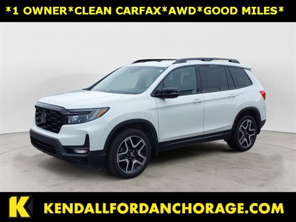 CARFAX One-Owner. Clean CARFAX. White 2022 Honda Passport Elite AWD 9-Speed Automatic 3.5L V6 24V SOHC i-VTEC 10 Speakers, 4-Wheel Disc Brakes, 4.334 Axle Ratio, A/V remote: CabinControl, ABS brakes, Air Conditioning, Alloy wheels, AM/FM radio: SiriusXM, Apple CarPlay/Android Auto, Auto High-beam Headlights, Auto-dimming door mirrors, Auto-dimming Rear-View mirror, Automatic temperature control, Blind Spot Information (BSI) System warning, Brake assist, Bumpers: body-color, Compass, Delay-off headlights, Driver door bin, Driver vanity mirror, Driver's Seat Mounted Armrest, Dual front impact airbags, Dual front side impact airbags, Electronic Stability Control, Emergency communication system: HondaLink, Exterior Parking Camera Rear, Forward collision: Collision Mitigation Braking System (CMBS) + FCW mitigation, Four wheel independent suspension, Front anti-roll bar, Front Bucket Seats, Front Center Armrest, Front dual zone A/C, Front fog lights, Front reading lights, Fully automatic headlights, Garage door transmitter: HomeLink, Heated & Ventilated Front Bucket Seats, Heated door mirrors, Heated front seats, Heated rear seats, Heated steering wheel, Illuminated entry, Lane departure: Lane Keeping Assist System (LKAS) active, Low tire pressure warning, Memory seat, Navigation system: Honda Satellite-Linked Navigation System, Occupant sensing airbag, Outside temperature display, Overhead airbag, Overhead console, Panic alarm, Passenger door bin, Passenger seat mounted armrest, Passenger vanity mirror, Perforated Leather-Trimmed Seats, Power door mirrors, Power driver seat, Power Liftgate, Power moonroof, Power passenger seat, Power steering, Power windows, Radio data system, Radio: 540-Watt Premium Audio System w/10 Speakers, Rain sensing wipers, Rear air conditioning, Rear anti-roll bar, Rear reading lights, Rear seat center armrest, Rear window defroster, Rear window wiper, Remote keyless entry, Roof rack: rails only, Security system, Speed control, Speed-sensing steering, Split folding rear seat, Spoiler, Steering wheel mounted audio controls, Tachometer, Telescoping steering wheel, Tilt steering wheel, Traction control, Trip computer, Turn signal indicator mirrors, Variably intermittent wipers, Ventilated front seats, Wheels: 20" Machined-Finish Alloy. Priced below KBB Fair Purchase Price!