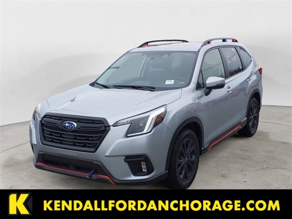 Clean CARFAX. Ice Silver 2024 Subaru Forester Sport AWD Lineartronic CVT 2.5L 4-Cylinder DOHC 16V 3.70 Axle Ratio, 4-Wheel Disc Brakes, 6 Speakers, 8" Audio w/harman/kardon & RAB & Power Rear Gate, ABS brakes, Air Conditioning, All-Weather Floor Liners, Alloy wheels, AM/FM radio: SiriusXM, Anti-whiplash front head restraints, Auto High-beam Headlights, Auto-Dimming Exterior Mirror w/Approach Light, Auto-Dimming Mirror w/Compass & HomeLink, Automatic temperature control, Brake assist, Bumpers: body-color, Driver door bin, Driver vanity mirror, Dual front impact airbags, Dual front side impact airbags, Electronic Stability Control, Emergency communication system: STARLINK Safety and Security (Subscription Required), Exterior Parking Camera Rear, Four wheel independent suspension, Front anti-roll bar, Front Bucket Seats, Front Center Armrest, Front fog lights, Front reading lights, Fully automatic headlights, harman/kardon 9-Speaker Audio System, Heated door mirrors, Heated Front Bucket Seats, Heated front seats, Illuminated entry, Knee airbag, Leather Shift Knob, Leather steering wheel, LED Upgrade, Low tire pressure warning, Occupant sensing airbag, Outside temperature display, Overhead airbag, Overhead console, Panic alarm, Passenger door bin, Passenger vanity mirror, Power door mirrors, Power driver seat, Power moonroof: Panoramic, Power Rear Gate, Power steering, Power windows, Radio data system, Radio: Subaru STARLINK 6.5" Multimedia Plus System, Radio: Subaru STARLINK 8.0" Multimedia Plus System, Rear anti-roll bar, Rear seat center armrest, Rear window defroster, Rear window wiper, Remote keyless entry, Reverse Automatic Braking System (RAB), Roof rack: rails only, Security system, Speed control, Speed-sensing steering, Split folding rear seat, Spoiler, Sport Cloth Upholstery, STARLINK/Apple CarPlay/Android Auto, Steering wheel mounted audio controls, Tachometer, Telescoping steering wheel, Tilt steering wheel, Traction control, Trip computer, Turn signal indicator mirrors, Variably intermittent wipers, Wheels: 18" x 7.0 J Black Finish Aluminum-Alloy.
