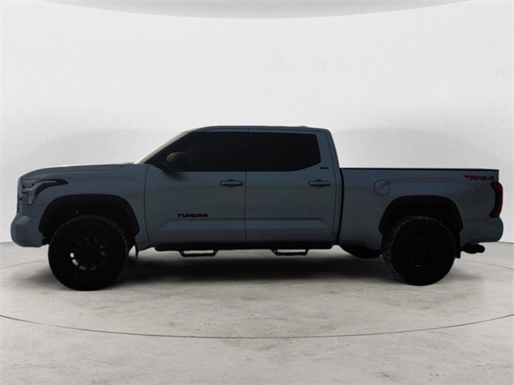CARFAX One-Owner. Silver 2025 Toyota Tundra SR5 4WD 10-Speed Automatic 3.4L V6 4WD, Black Cloth, Bumpers: body-color, Front & Rear Mud Guards, TRD Off-Road Package, Wheels: 20" Black Alloy, 18" Alloy Wheels, 3.31 Axle Ratio, 4-Wheel Disc Brakes, 9 Speakers, ABS brakes, Air Conditioning, All Weather Floor Liners (TMS), Alloy wheels, AM/FM radio: SiriusXM, Apple CarPlay/Android Auto, Auto High-beam Headlights, Automatic temperature control, Brake assist, Delay-off headlights, Driver door bin, Driver vanity mirror, Dual front impact airbags, Dual front side impact airbags, Electronic Stability Control, Emergency communication system: Safety Connect (10-year trial), Exterior Parking Camera Rear, Fabric Seat Trim, Front anti-roll bar, Front Bucket Seats, Front Center Armrest, Front fog lights, Front reading lights, Front wheel independent suspension, Fully automatic headlights, Heated door mirrors, Heated Leather Steering Wheel, Illuminated entry, Knee airbag, Low tire pressure warning, Occupant sensing airbag, Outside temperature display, Overhead airbag, Overhead console, Panic alarm, Passenger door bin, Passenger vanity mirror, Phone Cables - Smart USB (TMS), Power door mirrors, Power driver seat, Power steering, Power windows, Predator Drop Step (TMS), Radio data system, Radio: Audio Multimedia System, Rear reading lights, Rear step bumper, Rear window defroster, Remote keyless entry, Safety Connect, Security system, Speed control, Speed-sensing steering, Split folding rear seat, Steering wheel mounted audio controls, Tachometer, Tailgate Insert - Black (TMS), Telescoping steering wheel, Tilt steering wheel, Traction control, Trip computer, Variably intermittent wipers, Voltmeter, 4WD, Black Cloth, Bumpers: body-color, Front & Rear Mud Guards, TRD Off-Road Package, Wheels: 20" Black Alloy.